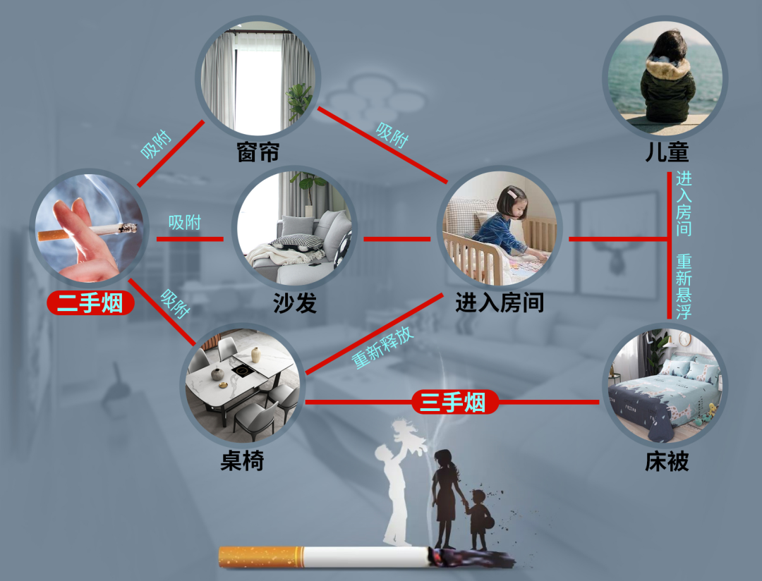 就算是煙霧散盡后,附在屋子里、衣服上的殘留物質也可能造成危害,它被稱作「三手煙」,同樣含有尼古丁、致癌物等!
